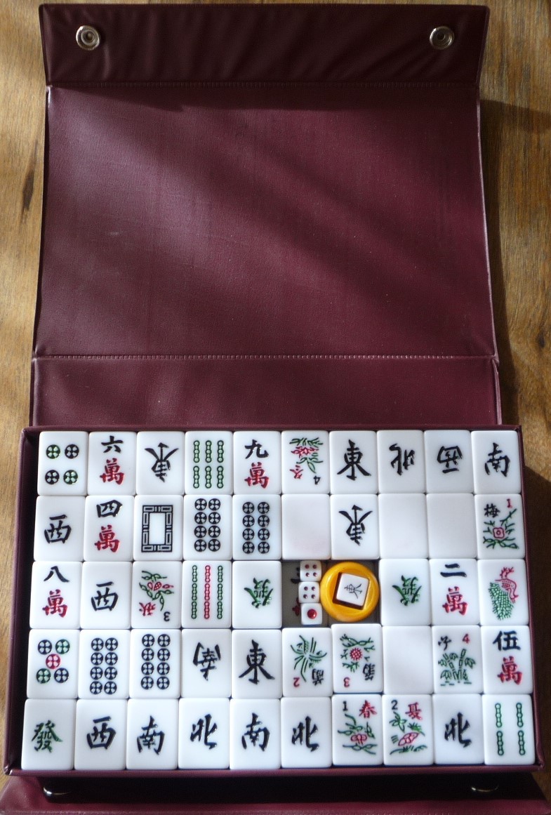 Asian Rummy derivative featuring melding and discarding, often played for monetary stakes. However, is a challenging exercise without this additional drama. The traditional tiles provide nice tactile and even aural pleasures as they click, click, click along. Comes in Chinese, Japanese and American rules versions, with many additional variations besides. Those which do not use the flowers and seasons reduce the luck and are the most interesting for serious players. Probably invented around AD 1850 in the city of Ningpo, China, by two brothers from the earlier ma tiae. It was imported to the United States c. 1922 and in just two years became so popular that Congress had to enact a law regularizing the name under which it was published. Read more at https://www.daniel.gottesman.com/maj/majHistory.html or at https://members.aol.com/pungchw3/brief.htm. Mah Jong Handbook: How to Play, Score, and Win the Modern Game [analysis] [scoring chart] [Buy it at Amazon]