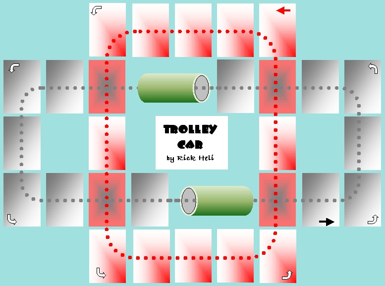 Trolley Car has been designed by Rick Heli. If you try the game, I would love to hear how your game went and what you thought of it.